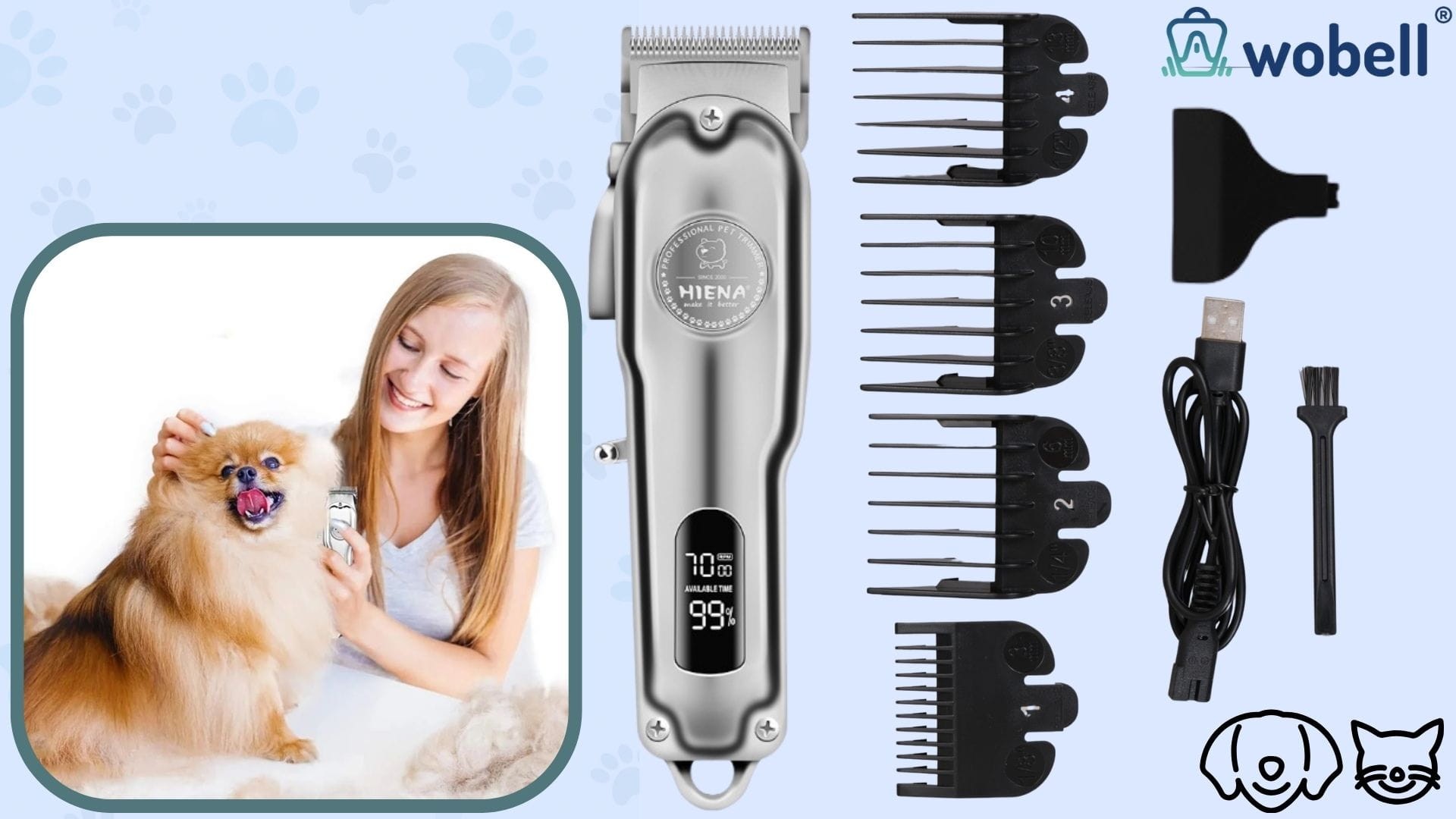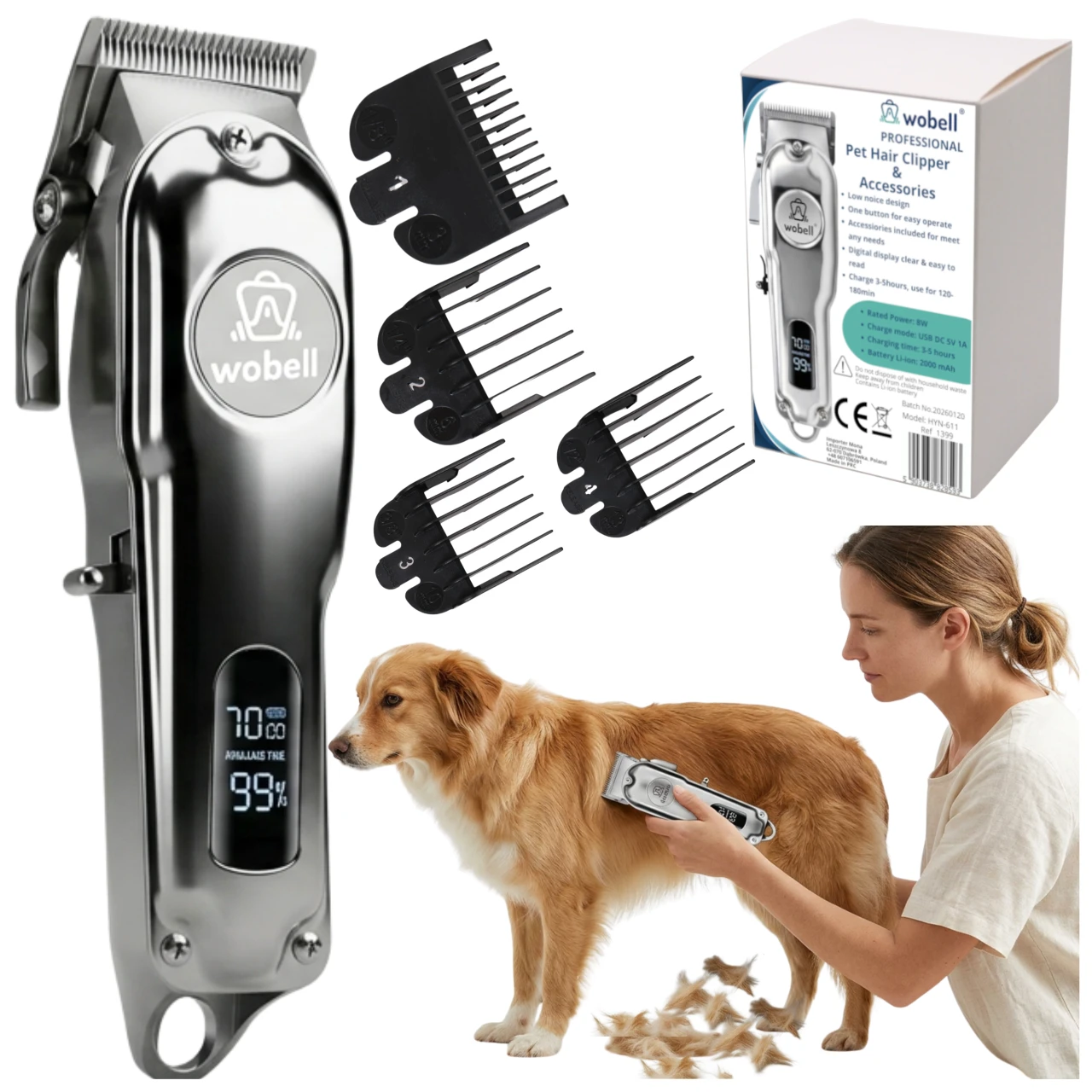 Golarka dla zwierząt do strzyżenia z 4 końcówkami pilnik do pazurów trymer WOBELL