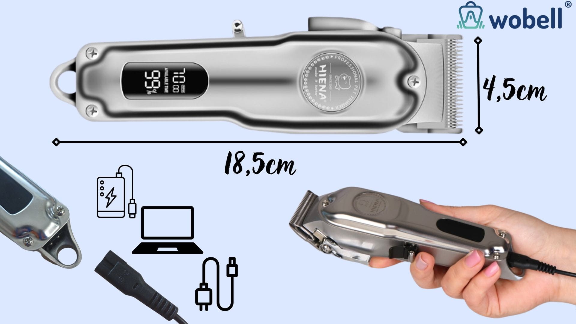 - Solidna, metalowa obudowa – masywna i trwała konstrukcja - Maszynka w całości wykonana z metalu (stal nierdzewna) wygląda jak profesjonalny sprzęt groomerski. Jest masywna, „ciężka w ręce” i odporna na uszkodzenia – klienci podkreślają jej wysoką jakość wykonania.