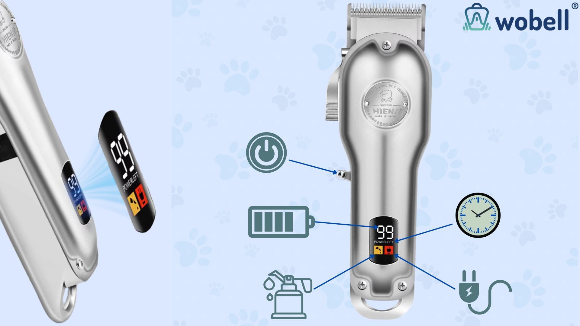 - Czytelny wyświetlacz – pełna kontrola nad pracą maszynki - Przejrzysty wyświetlacz informuje o poziomie naładowania baterii i najważniejszych parametrach pracy. Dzięki temu wiesz, ile czasu pracy pozostało i możesz spokojnie dokończyć strzyżenie.