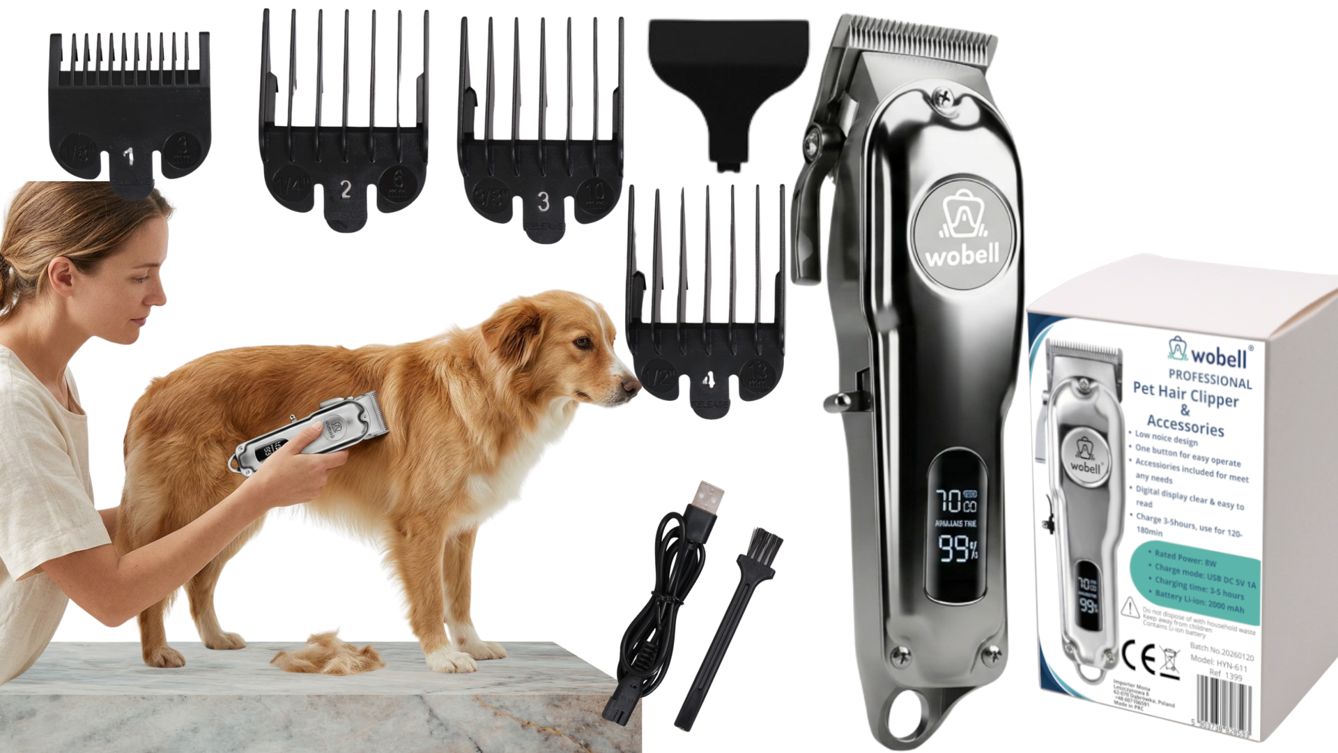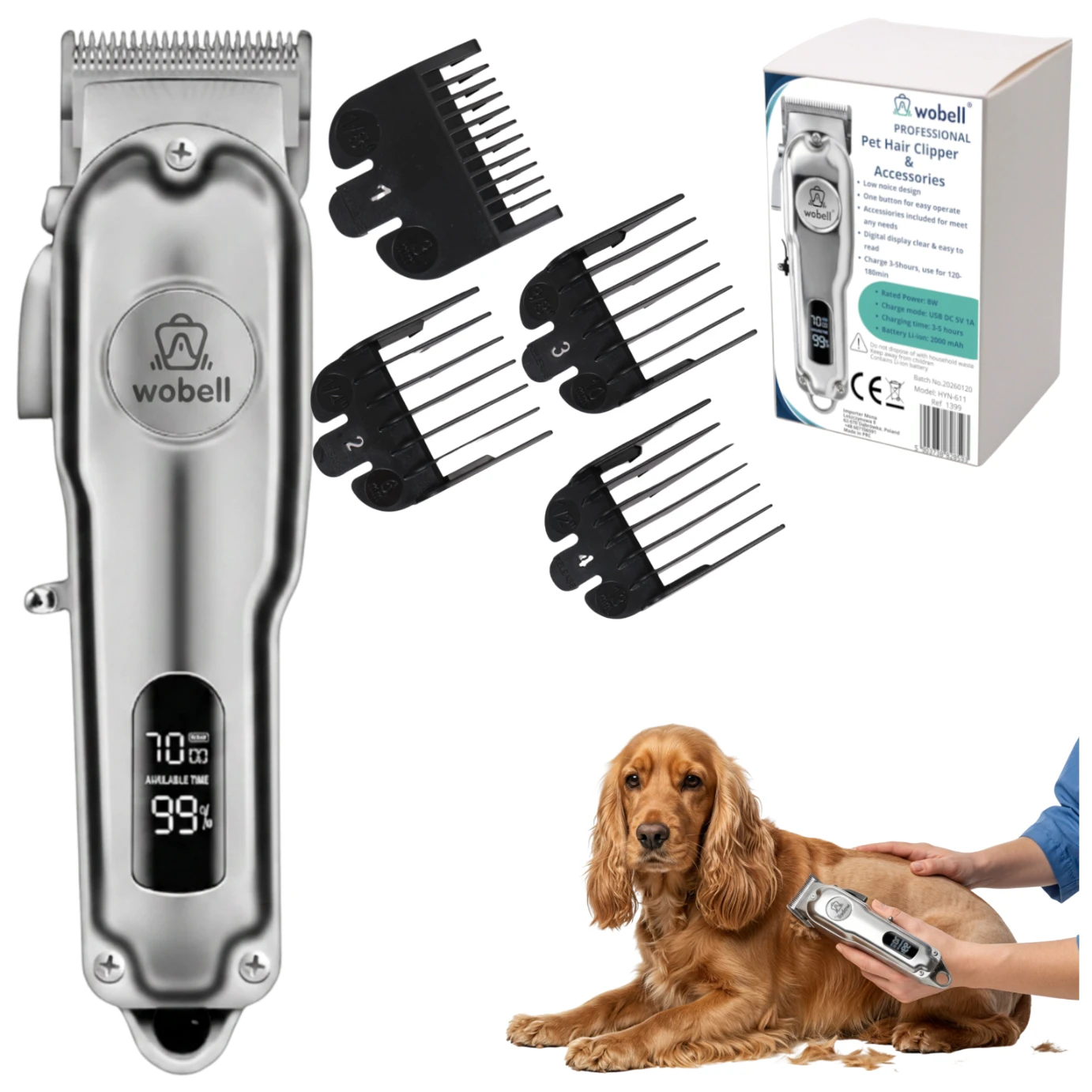 - Długi czas pracy na baterii + tryb bezprzewodowy - Pojemny akumulator zapewnia długą pracę bez konieczności częstego ładowania. Bezprzewodowa maszynka do strzyżenia zwierząt ułatwia manewrowanie przy łapach, brzuchu czy ogonie, bez plączącego się kabla.