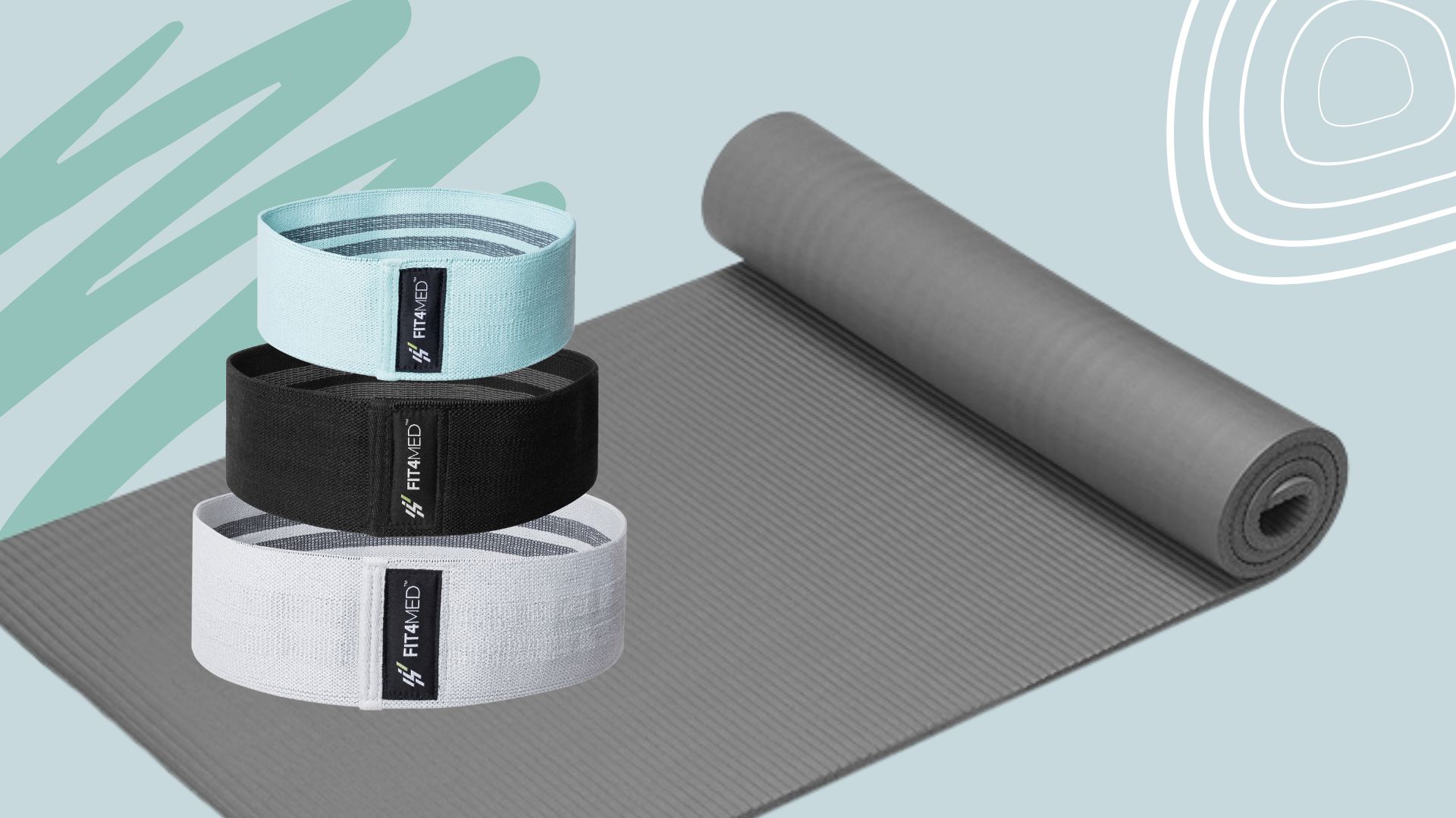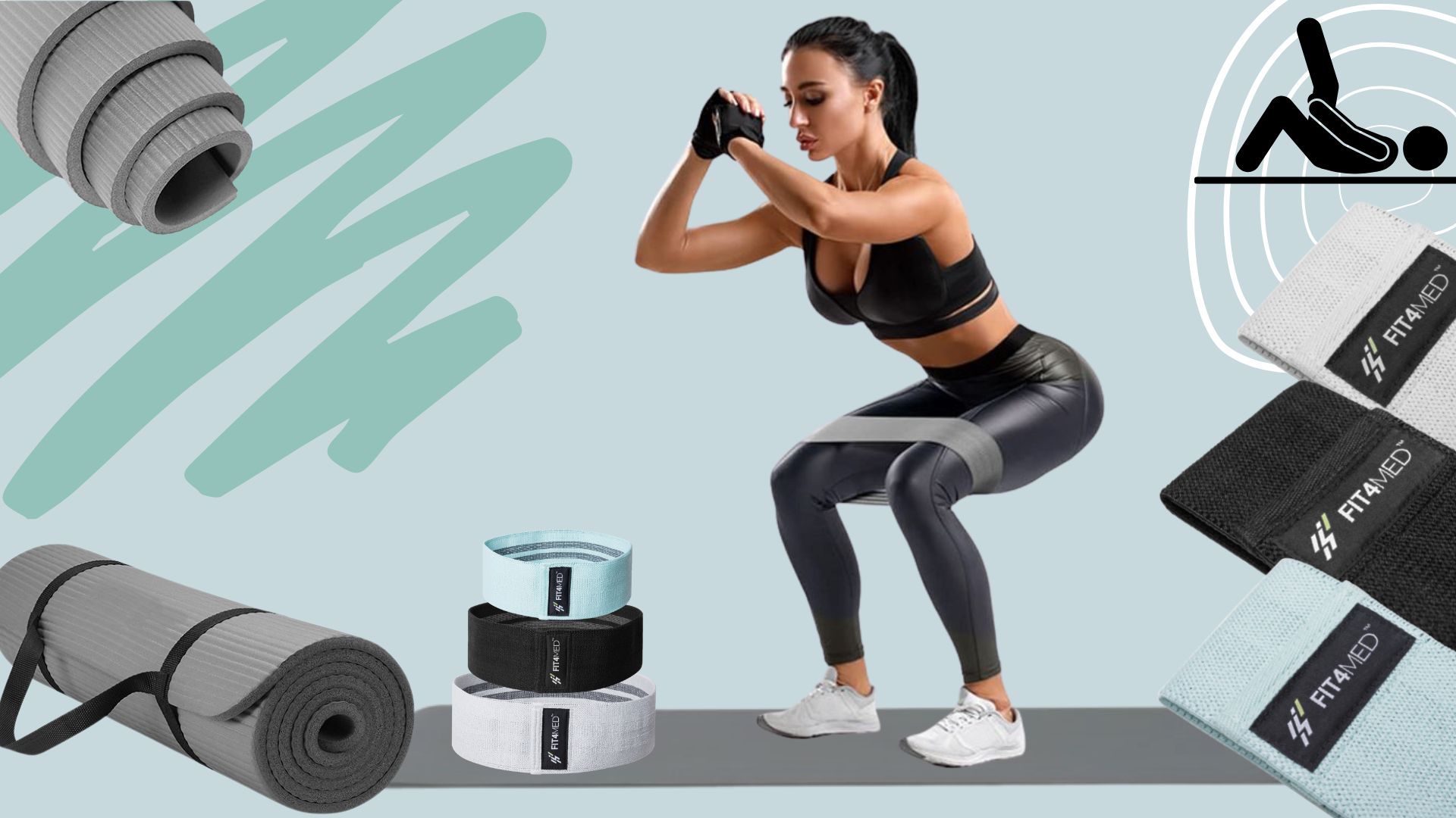 Gumy Taśmy materiałowe do ćwiczeń fitness+Mata