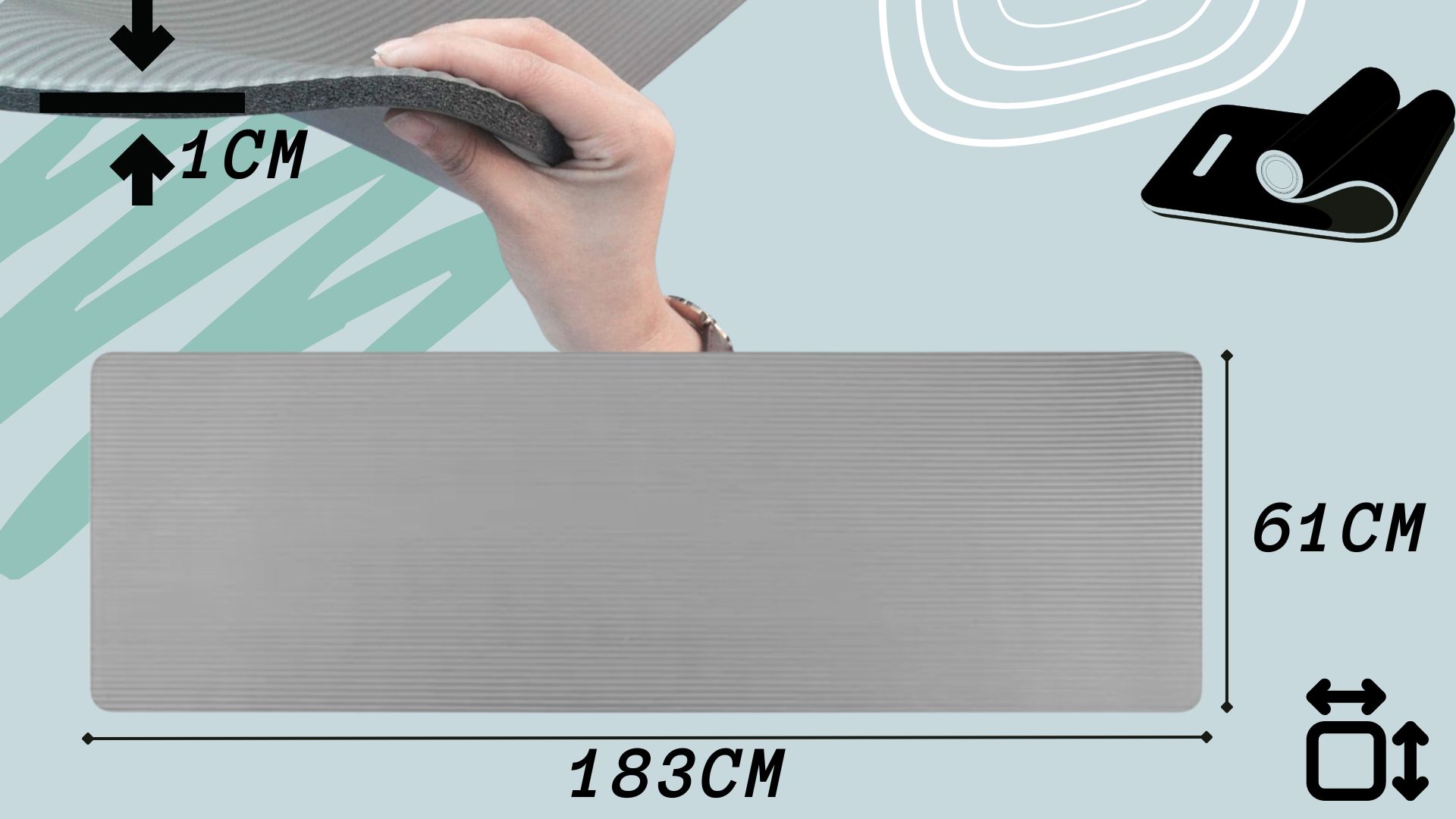 ✅Szara Mata do ćwiczeń o wymiarach 183x61 cm grubość 1cm