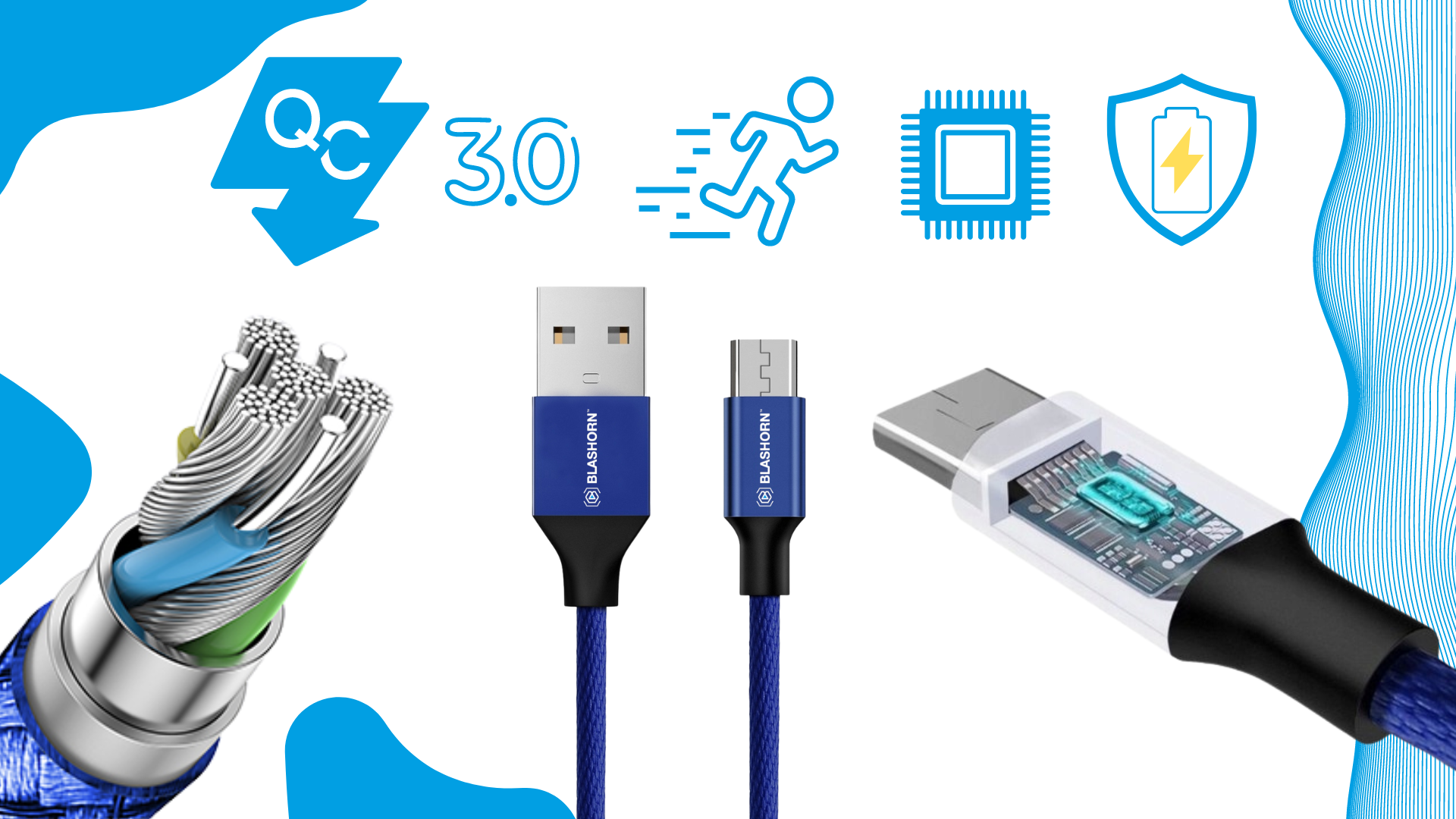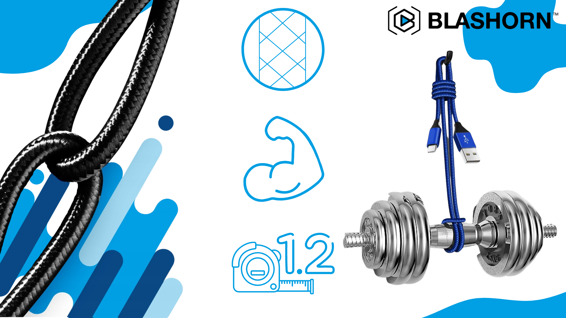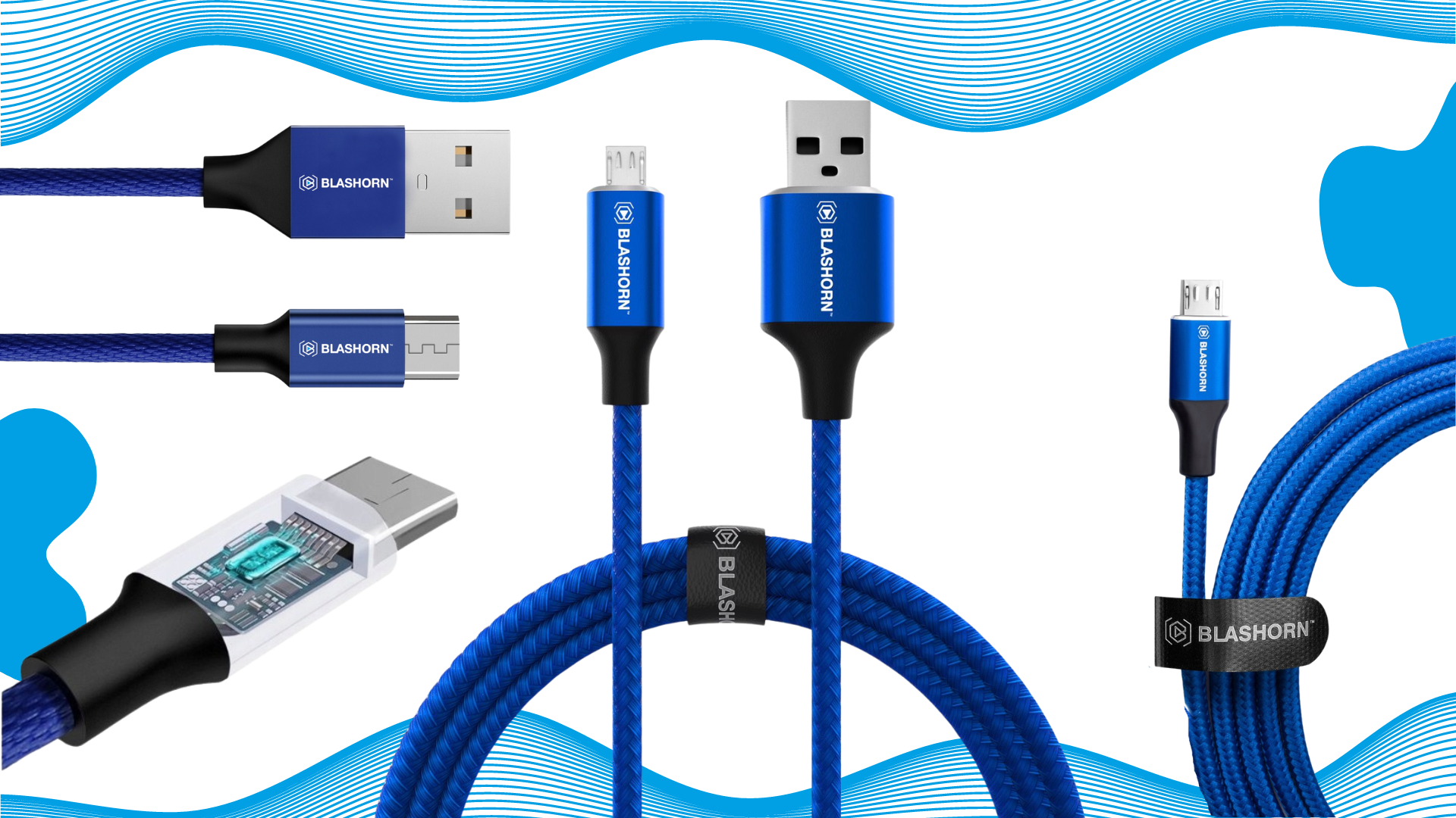 ➡️ PROFESJONALNY Kabel USB A - MICRO USB NIEBIESKI 1.2m BLASHORN