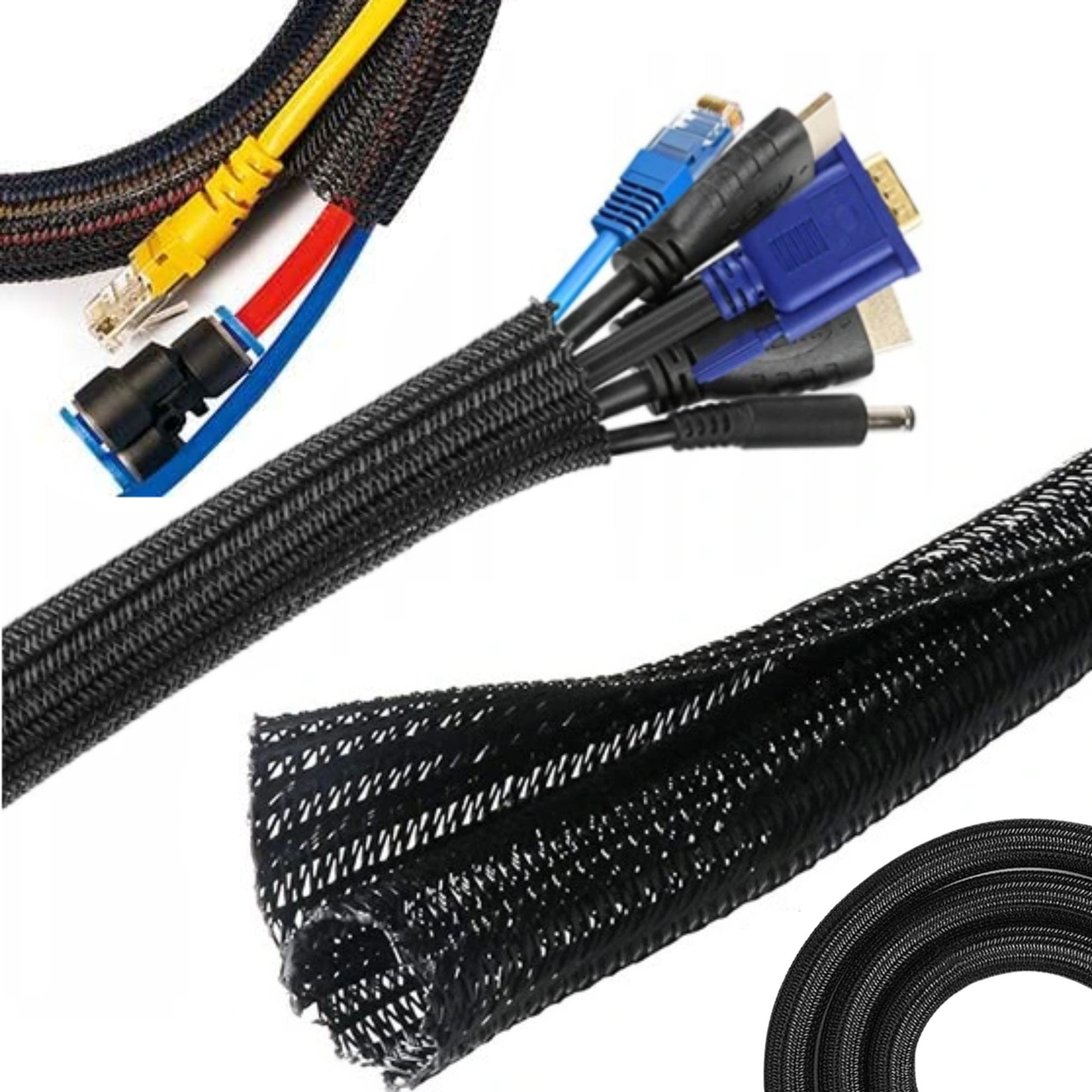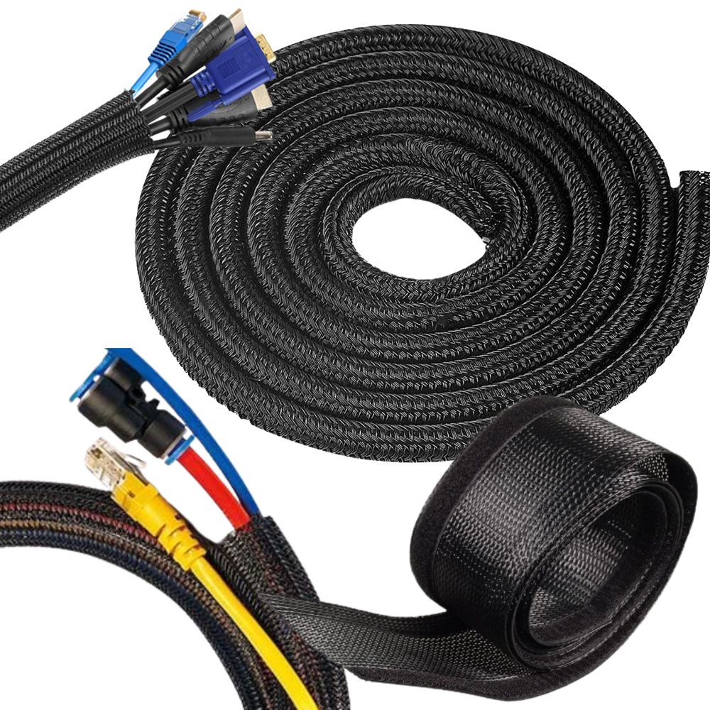 Maskownica na kable – organizer z oplotem, 3 metry, czarna