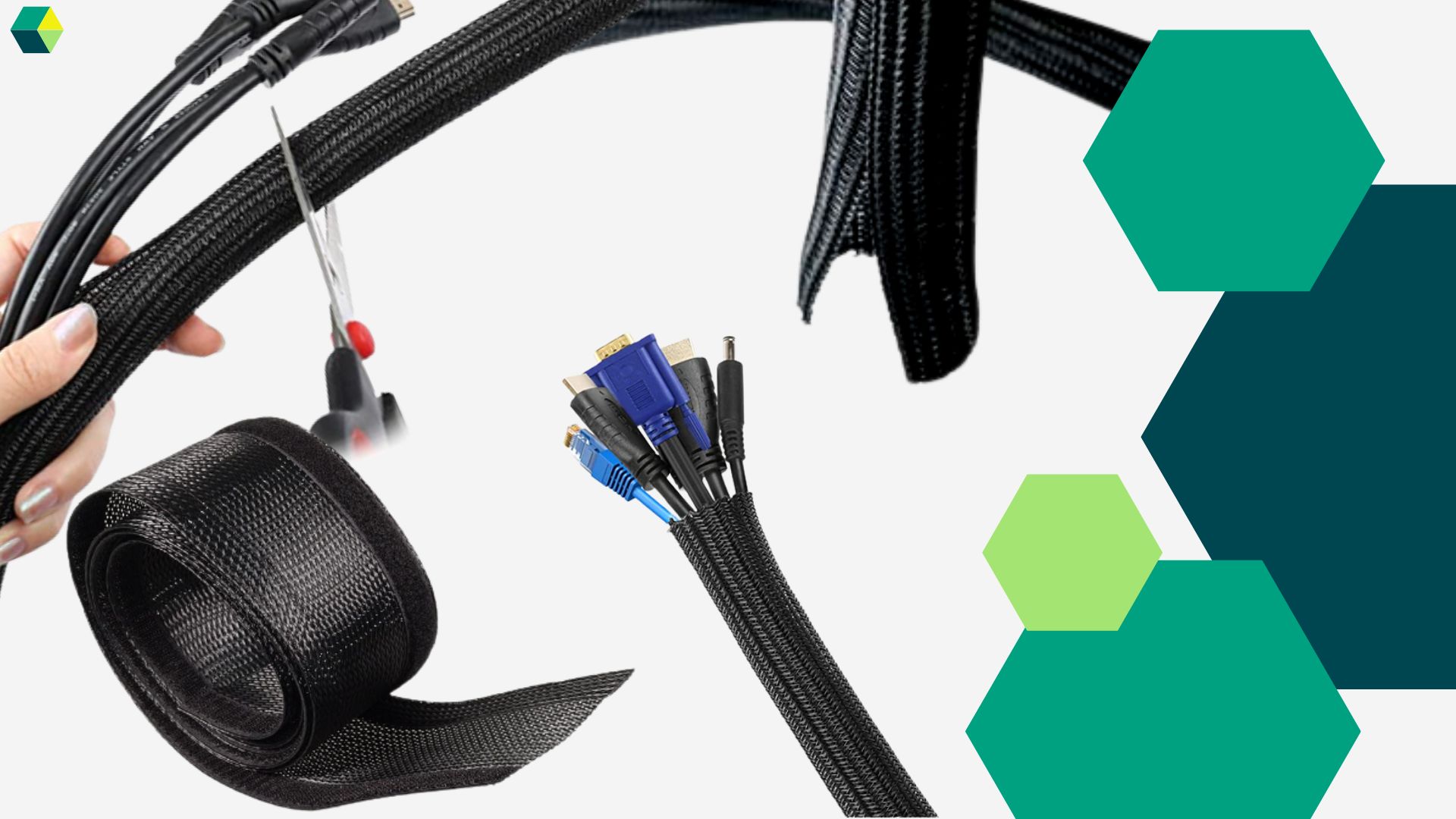 - ✅ Elastyczna poliestrowa siatkowa konstrukcja pozwala na spięcie w jedną wiązkę od 8-10 kabli o różnej grubości.