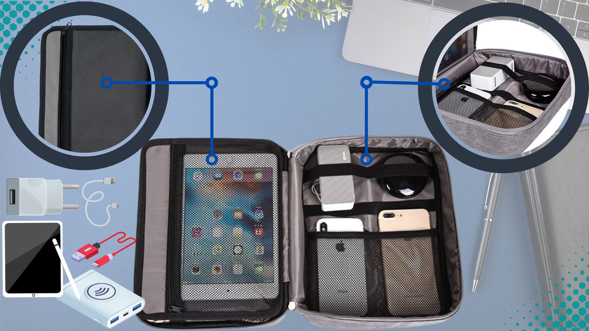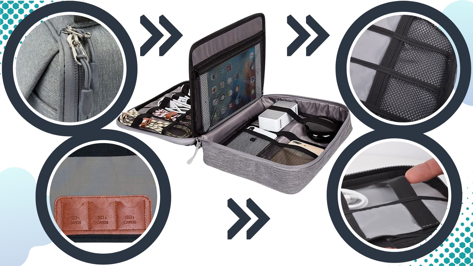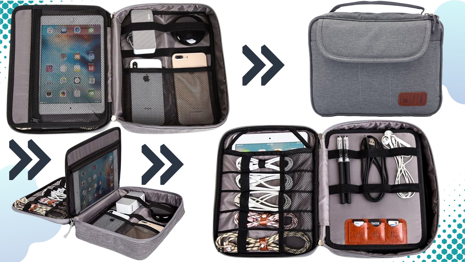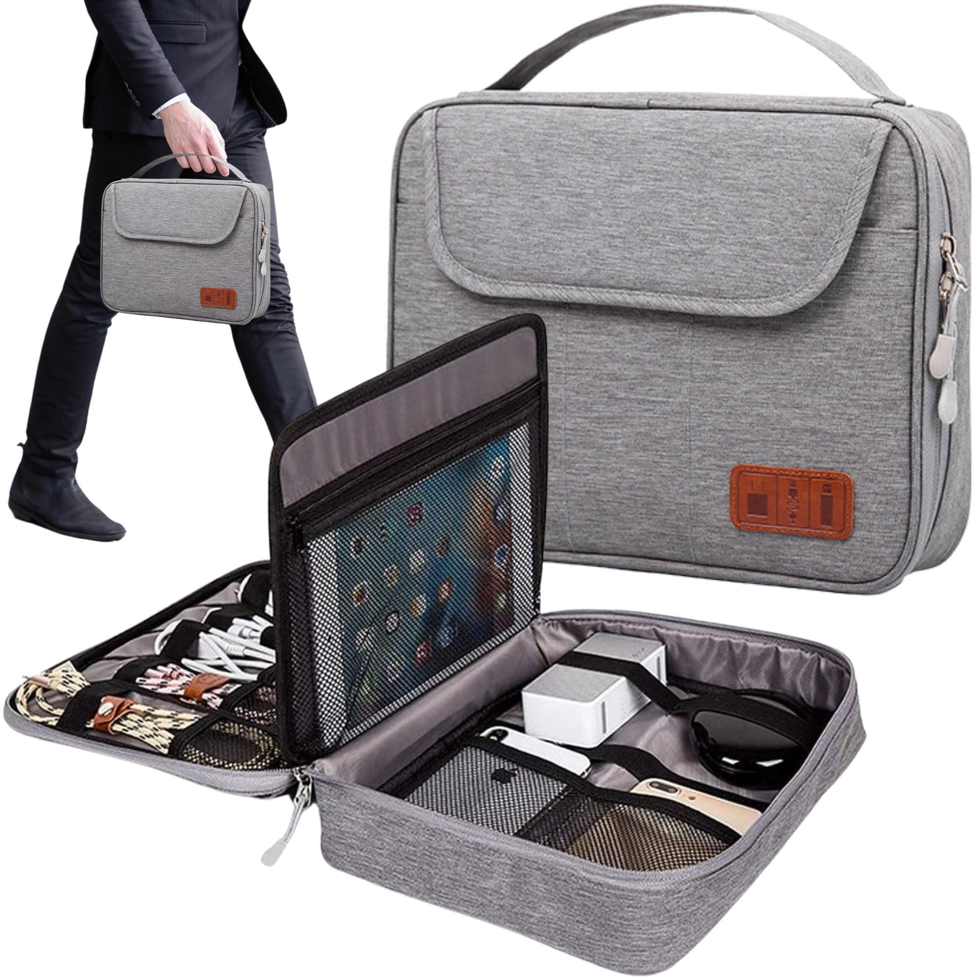 - ✅Pojemna dwuwarstwowa konstrukcja - wewnątrz znajduje się dużo przestrzeni do organizacji akcesoriów. Organizer sprawi, że wreszcie szybko znajdziesz ładowarkę, kabel USB, kartę pamięci czy kabel audio. Dzięki niemu szybko uporządkujesz swoje podręczne kable, ładowarki.