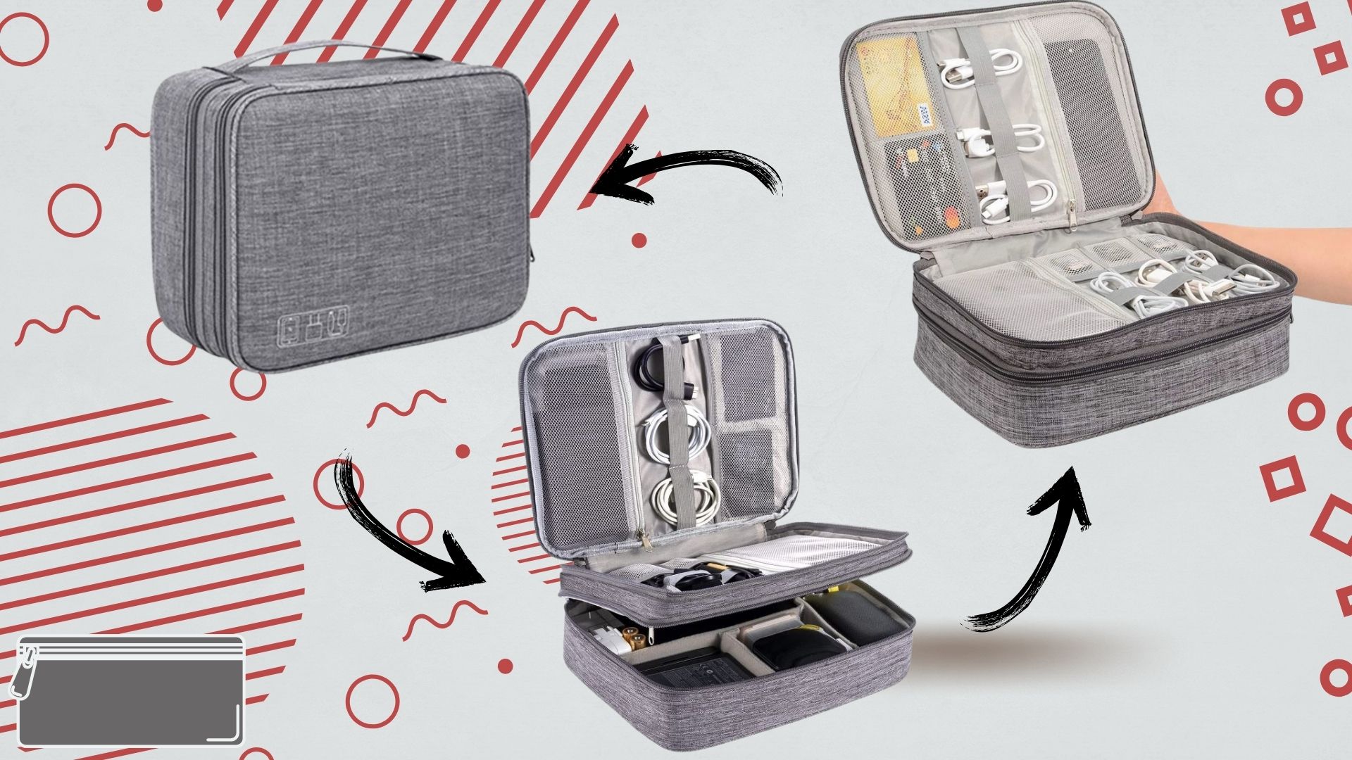➡️PODRÓŻNY 2 WARSTWOWY ORGANIZER NA AKCESORIA ELEKTRONICZNE +