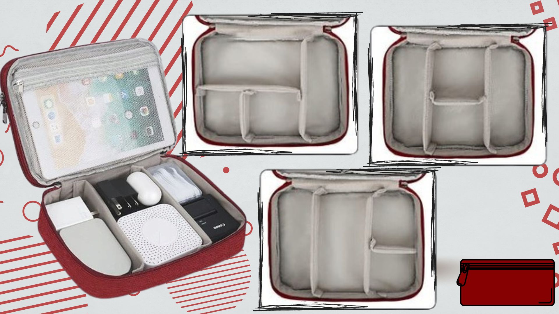 Nasz Organizer posiada dwie warstwy z niezliczoną ilością przegródek, kieszonek zapinanych na zamek, elastycznych pasków do przechowywania kabli