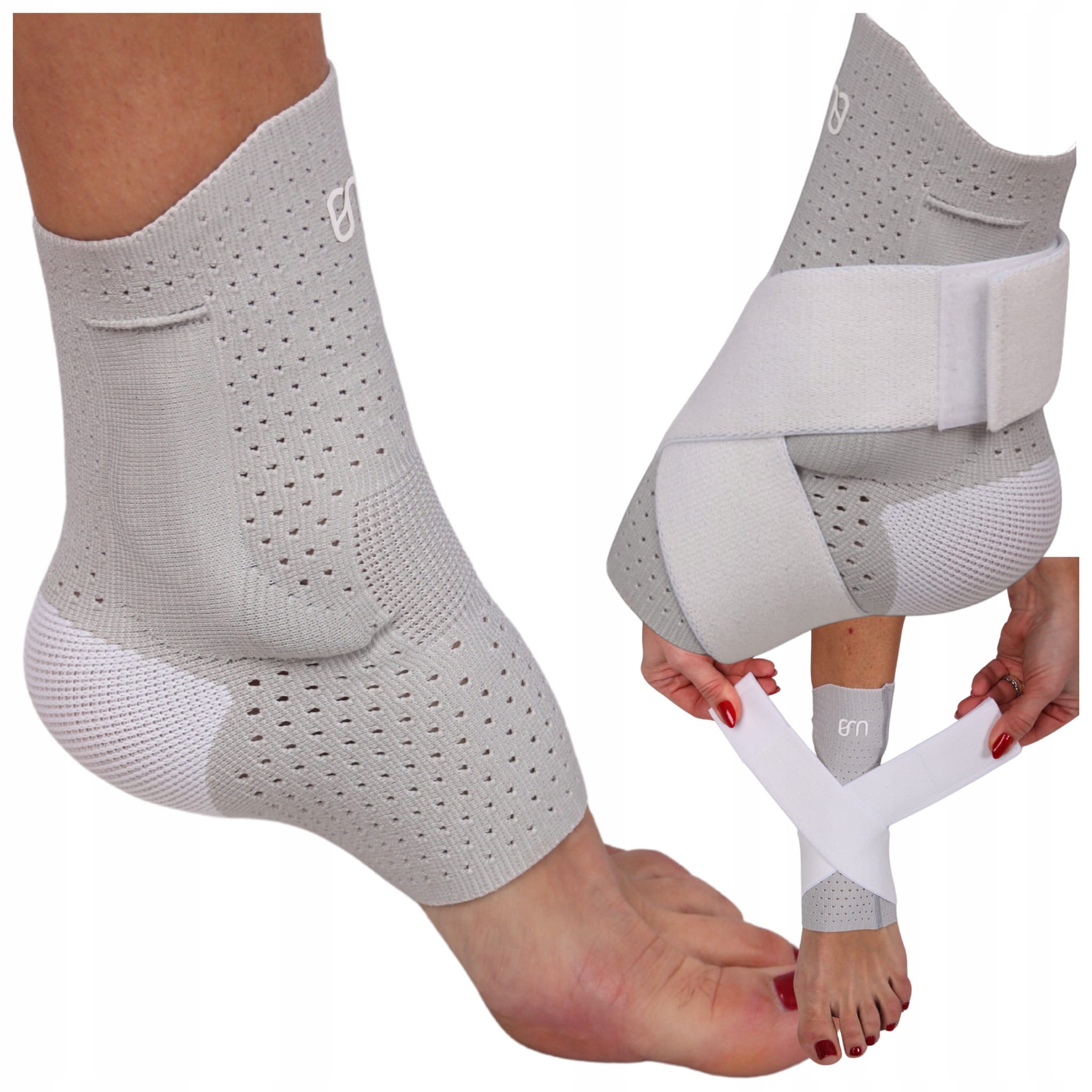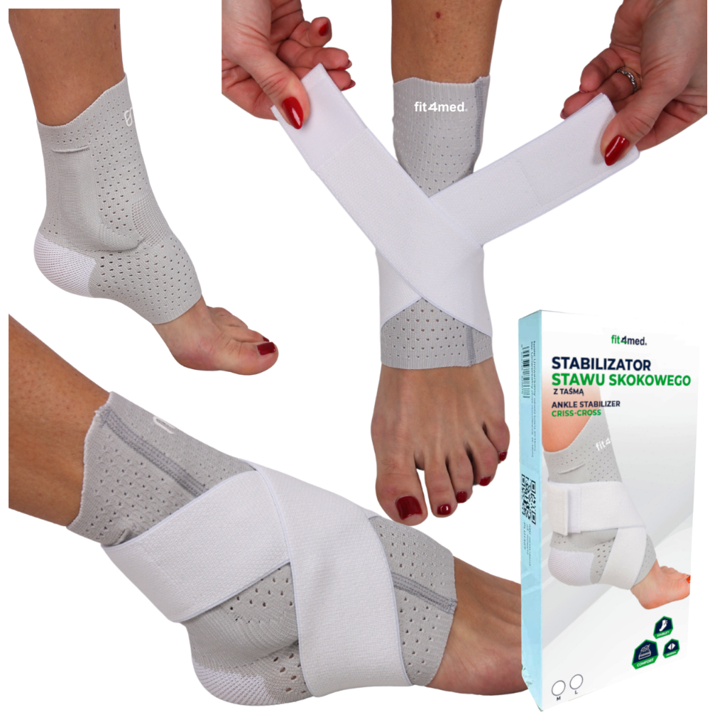 - ✅Stabilizator kostki z taśmą dociągającą w kształcie "8" - pomaga dodatkowo ustabilizować staw skokowy i zabezpieczyć go przed przed skręceniem lub urazem supinacyjnym