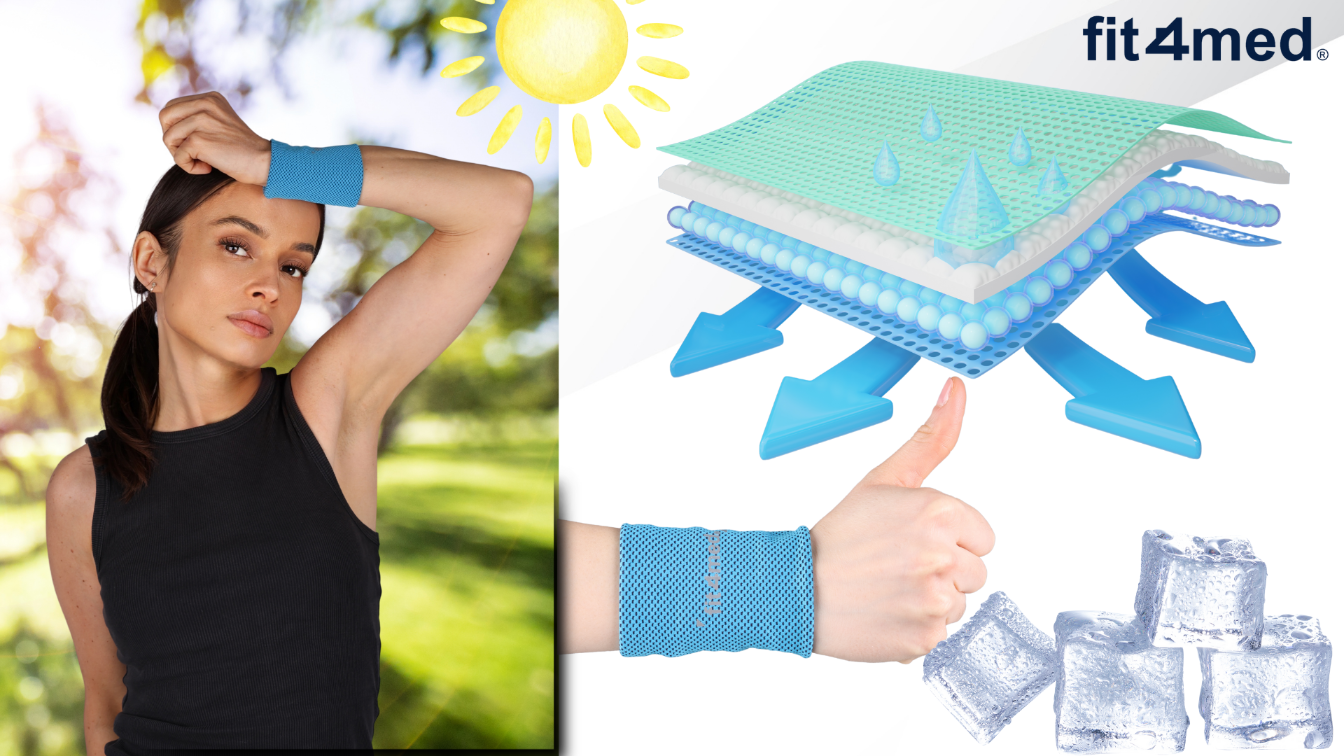 - ✅ Odparowywanie wilgoci – wilgotna opaska pochłania pot, a jego stopniowe parowanie daje efekt ochłodzenia