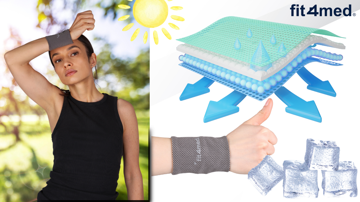 - ✅ Odparowywanie wilgoci – wilgotna opaska pochłania pot, a jego stopniowe parowanie daje efekt ochłodzenia