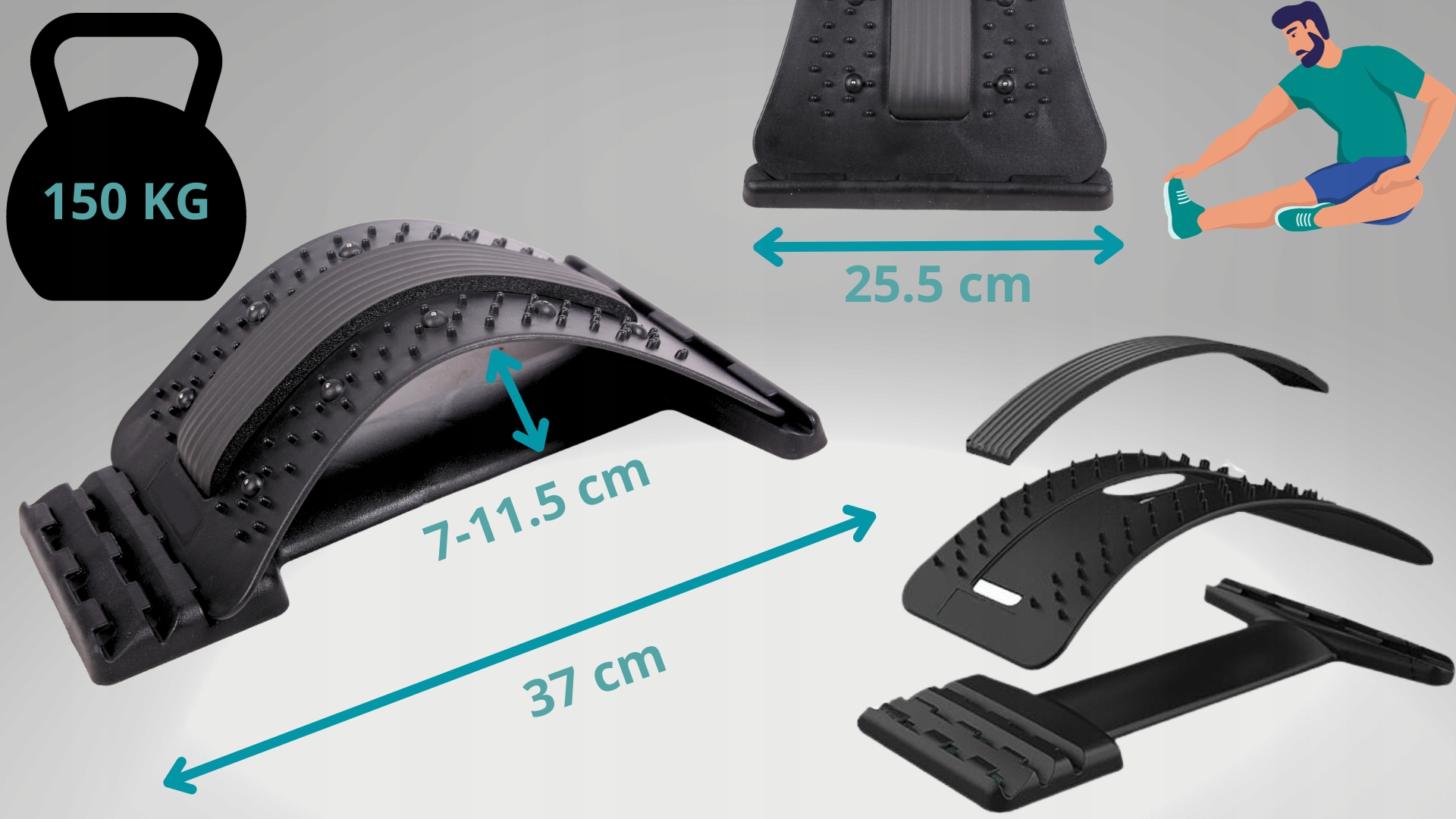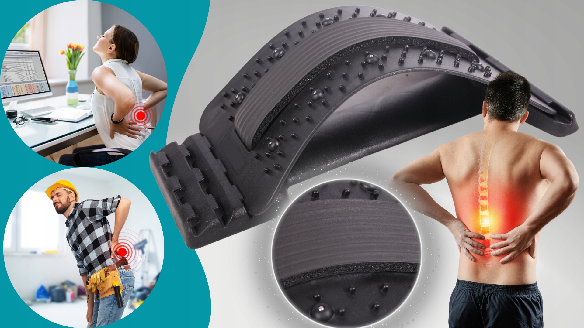 - ✅Rozluźnia spięte mięśnie szczególnie w obrębie lędźwi - przyrząd do rozciągania pleców, działa korzystnie na cały kręgosłup. Łatwy w obsłudze, wystarczy położyć się na nim, by poczuć natychmiastową ulgę