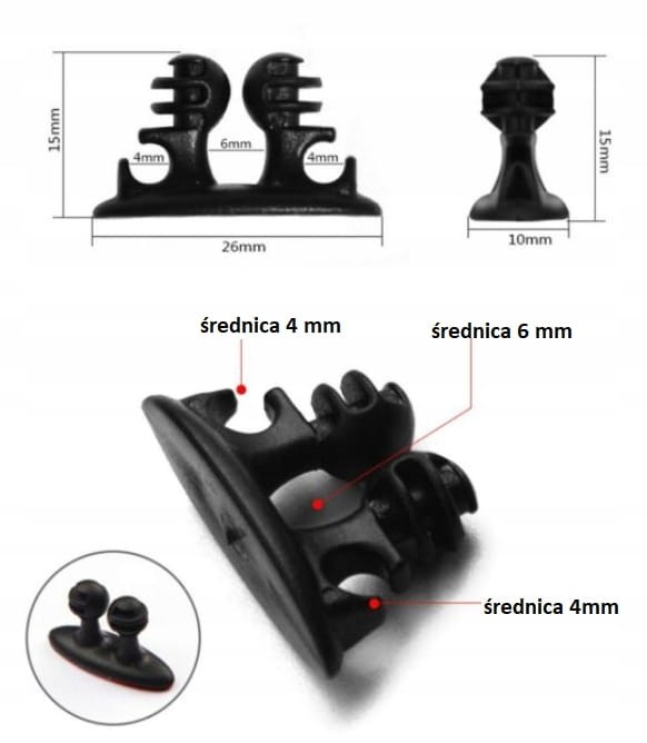 - możliwość uporządkowania aż 3 kabli w jednym uchwycie