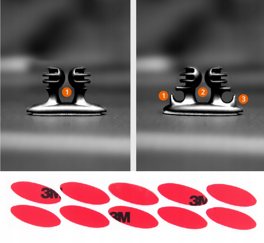 Łatwy montaż: wystarczy oczyścić powierzchnię, przykleić taśmę, umieścić uchwyt na powierzchni i włożyć przewody które chcesz uporządkować.