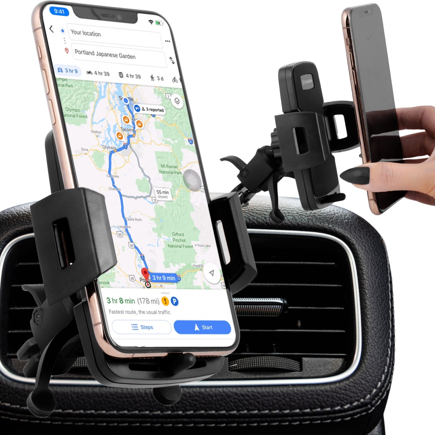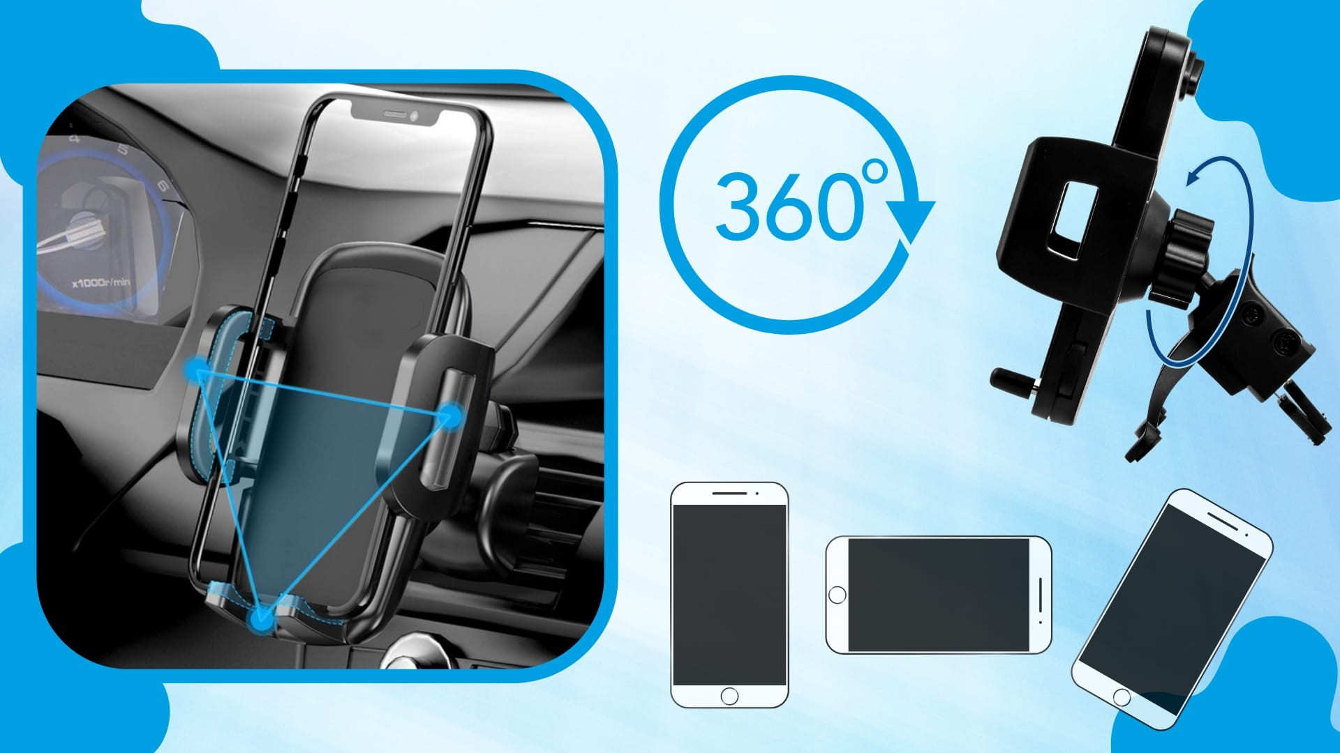 - ✅Dla każdego typu nawiewu – Uchwyt jest kompatybilny z prawie każdym typem kratek samochodowych.