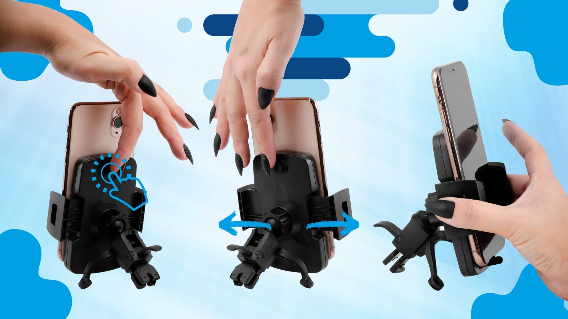 - ✅Bezpiecznie włóż telefon w uchwyt, za pomocą jednego przycisku rozszerzysz ramiona, a jednym ściśnięciem szybko dostosujesz odpowiednią szerokość ramion do telefonu. Jeśli chcesz wyjąć telefon z uchwytu wystarczy nacisnąć jeden przycisk z tyłu urządzenia. Obsługa jest banalnie prosta.