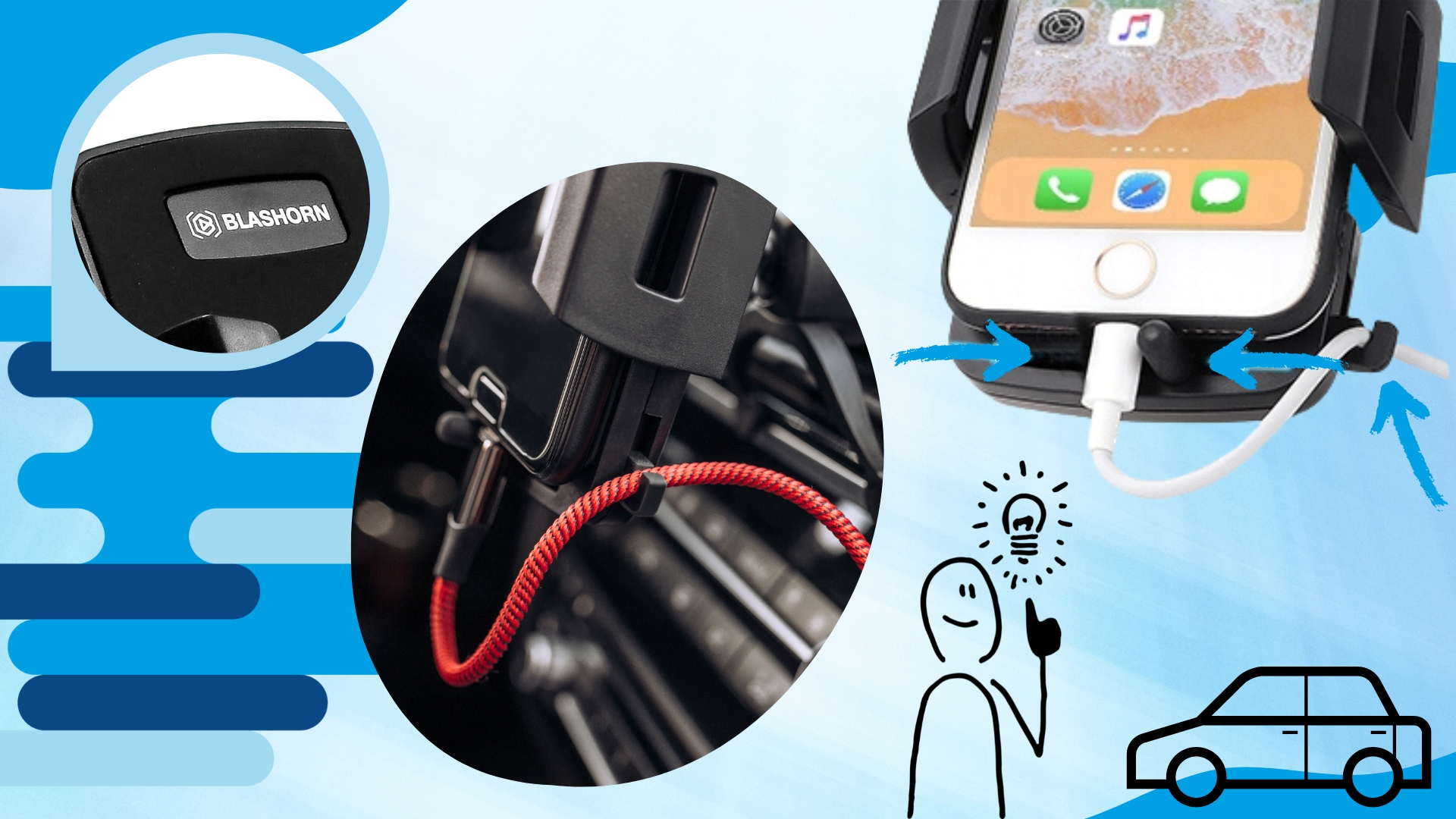 ➡️ Blashorn zaciskowy uchwyt do samochodu na kratkę nawiewu