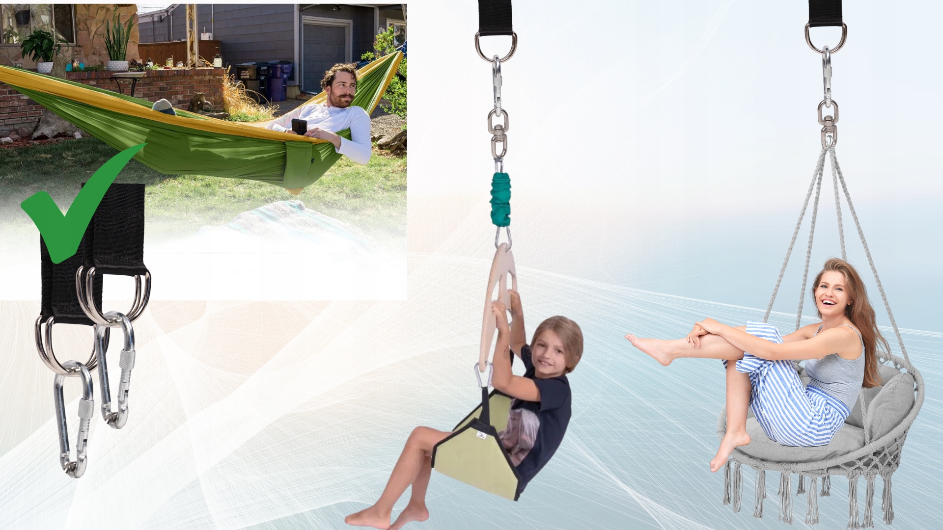 ✅Zawieś huśtawkę czy hamak i zapewnij sobie komfortowy odpoczynek w dowolnym miejscu Dzięki swojej wszechstronności, zestaw ten świetnie sprawdzi się do hamaków, huśtawek czy bocianiego gniazda dając Ci możliwość cieszenia się chwilą relaksu w otoczeniu przyrody.