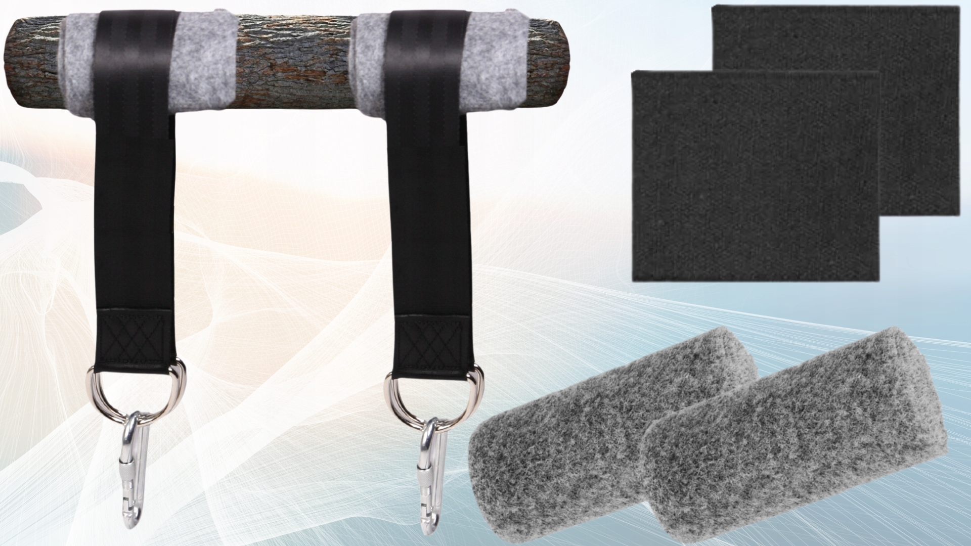 - ✅Filcowe podkładki - w zestawie znajdują się dwie filcowe podkładki dzięki temu mocowanie jest bezpieczne nie tylko dla użytkownika, ale także dla naturalnego środowiska, ponieważ nie uszkadzają kory drzewnej.